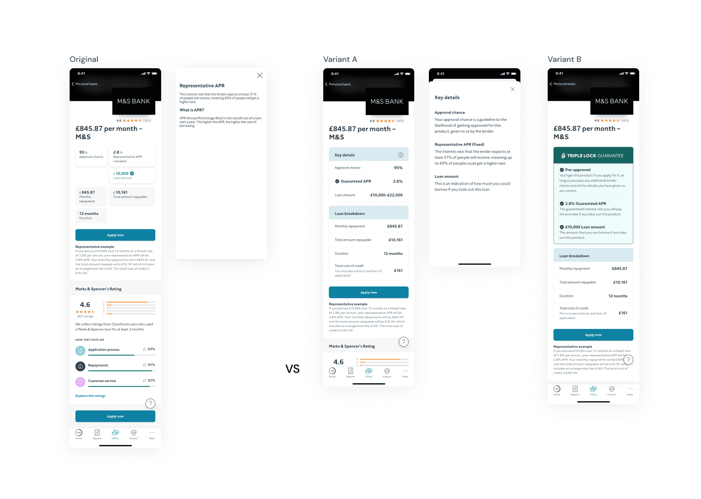 We know through customer feedback and previous research that users’ confidence in applying through ClearScore and understanding of key terms (‘pre-approved’ and ‘representative APR’) is low.